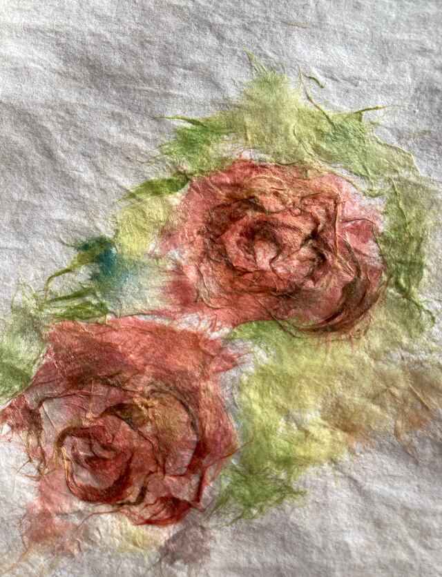 バラのちぎり絵をした和紙のブックカバー(367×203)