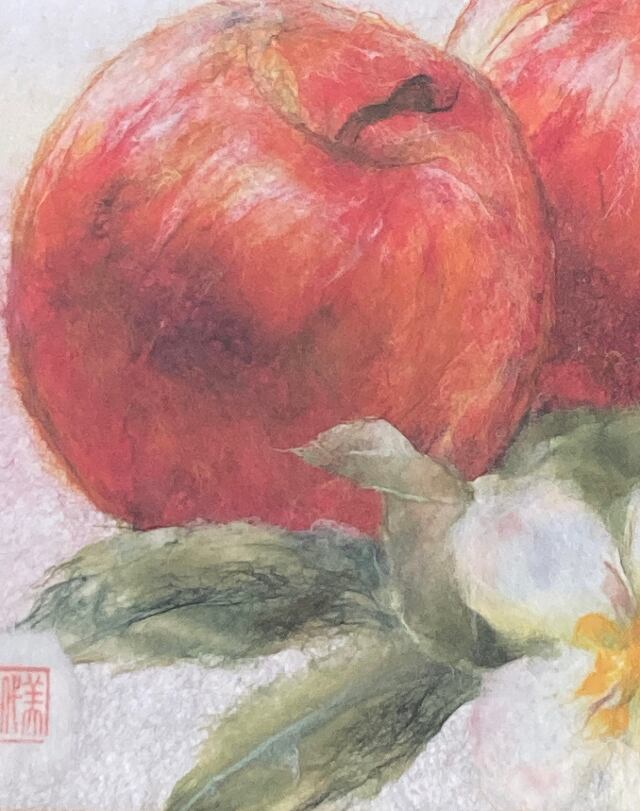 ちぎり絵 りんごと花 3号(273×220) 額サイズ(355×285)